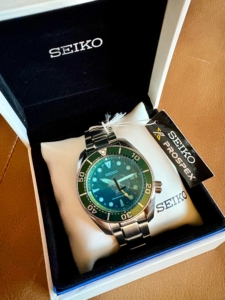 [WTS] Seiko Prospex Arnie Tropical Lagoon. SNJ039 48mm Solar Analog-Digital on blue silicone strap. Excellent condition, very minor micros to keeper and buckle. Otherwise like new. Box and papers. $275 shipped to CONUS. PayPal/Venmo.