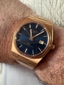 [WTS] Tissot PRX in Rose Gold with Blue Dial. 40mm Integrated bracelet sports watch with flair. And that dial! Full kit, sized but unworn bracelet. Mint watch head, warranty included. $750 OBRO.