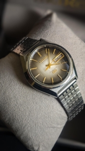 [wts] 1970's vintage Citizen Electronic Cosmotron QZ 4-790791 Brown woody textured dial 38mm Men's watch, price $285