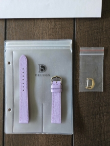 [WTS] PRICE REDUCTION Brand-new/unworn 16mm Delugs custom-made Lavender Chevre Slim Strap for small Cartier Tank, $100